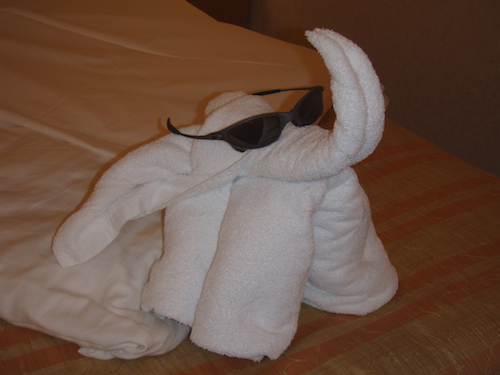 Caption: The Elephant Towel, wearing Rick's Oakleys