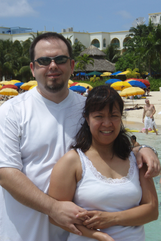 Caption: Eileen and Rick (not in that order) at Doctor's Cave Beach