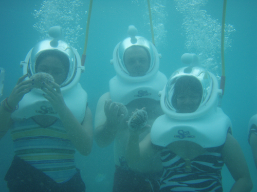 Caption: Helmet diving off Doctor's Cave Beach